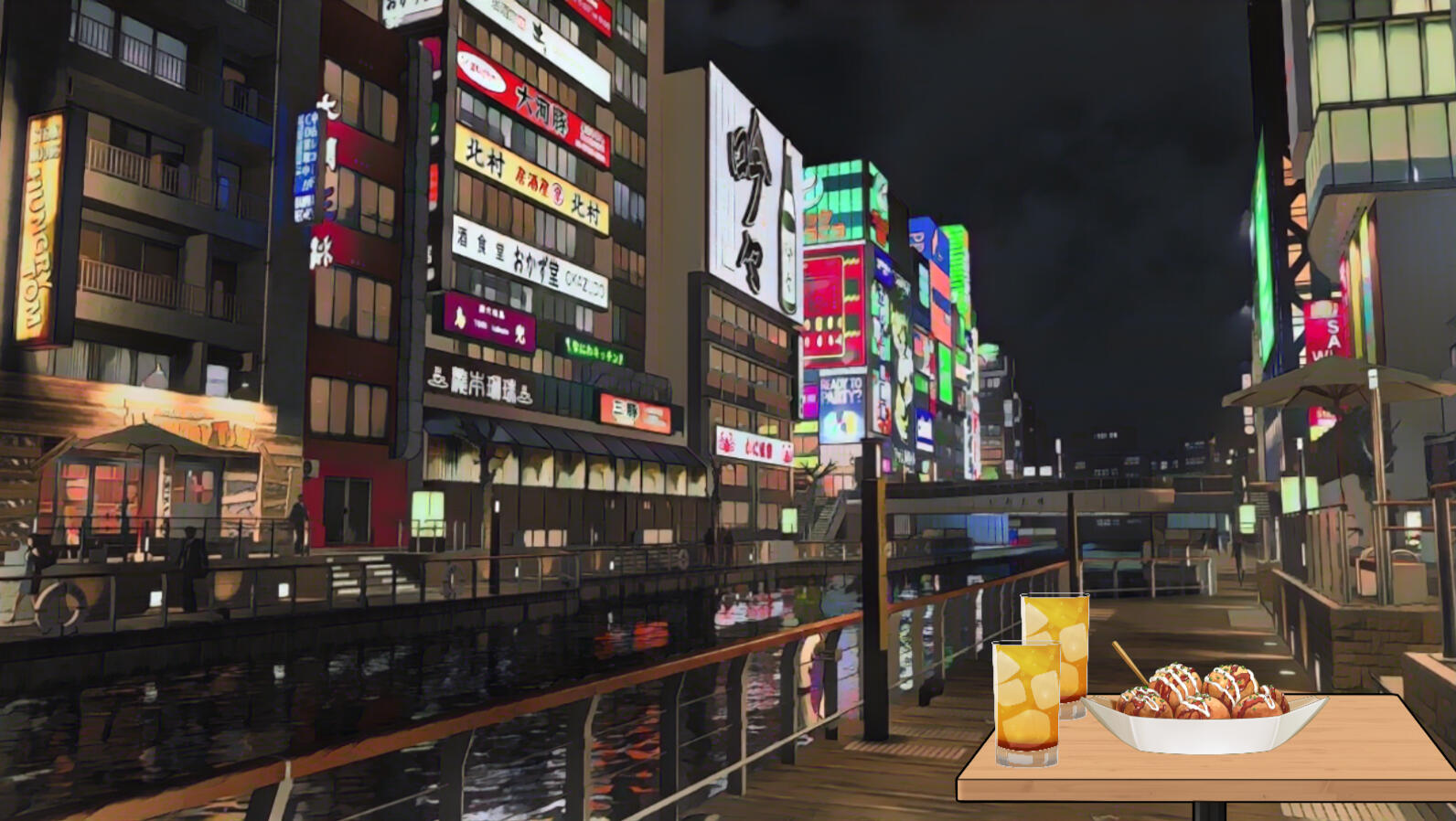 About Sotenbori is the name of the entertainment district in Osaka (based on the real life Dotonbori district). It is Shinya's and Ryoma's main territory. The area is split by the Sotenbori river, with the north side being the lively Sotenbori street and the south side having a more underground field. The area is usually brightly lit with a proeminance of lavish decorations. Ryoma and Shinya love hanging by the promenade area where they eat from the local small restaurants.