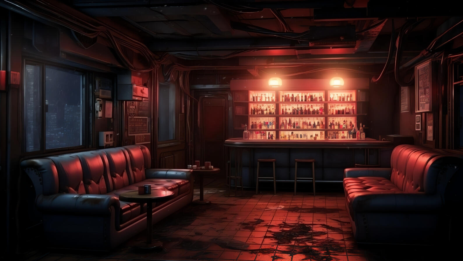 About Within the Moonlight Grove club, there is also a Karaoke bar set in there for members of the clans to enjoy. The room is incredibly well isolated, the place is perfect for loud singing or to take care of troublemakers.... is this a drink on the floor or something else?